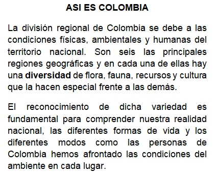 Se dice que el territorio Colombiano se divide el seis grandes áreas por: